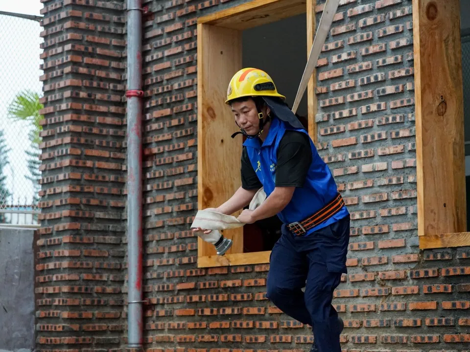本次比武考核了单人40米4千克干粉灭火器灭油操、双人室内消火栓出水操、双人模拟火灾扑救操、双人楼层垂直铺设水带操等项目。队员们凭借丰富的实战经验,在面对火灾时准确地采取行动,迅速完成了快速着装、连接水带、灭火操作等流程,顺利完成考核。